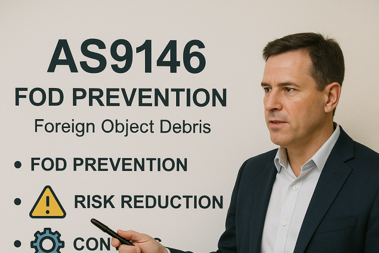 The AS9146 FOD Prevention course provides practical training on identifying, preventing, and controlling foreign object debris within aerospace manufacturing and maintenance environments
