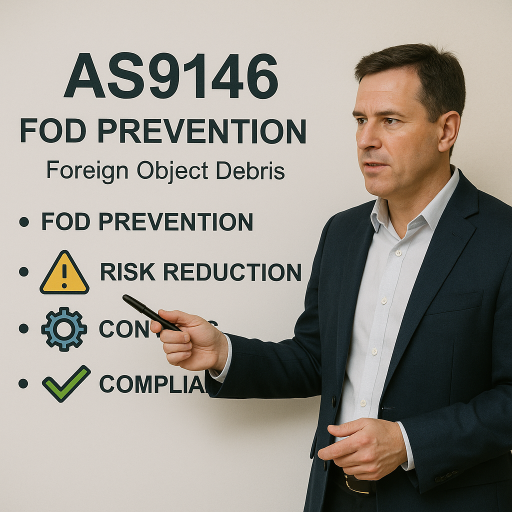 Foreign Object Debris (FOD) presents a significant risk to product safety, airworthiness, and operational performance within the aerospace industry. AS9146 defines the requirements for establishing, implementing, and maintaining an effective FOD prevention programme across aerospace manufacturing, maintenance, and assembly environments.